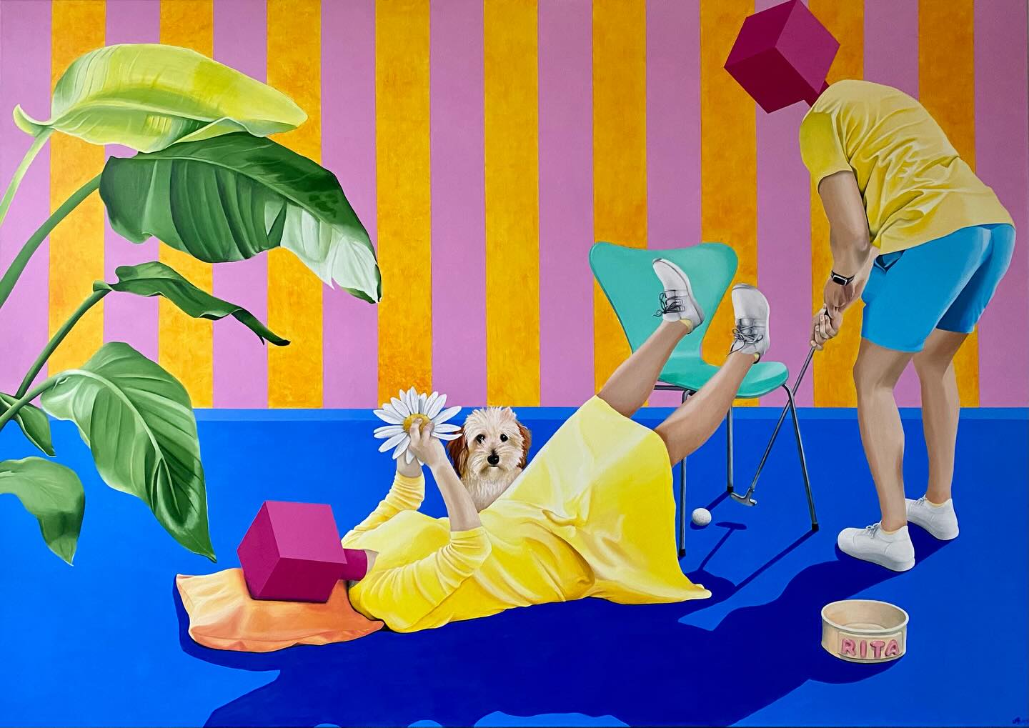 “Køller og kugler” akryl på lærred 80x100 cm. Med UV-lak.